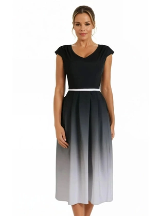 Dwukolorowa sukienka damska z wyszczuplającą baskinką 32333