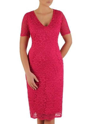 Koronkowa sukienka wizytowa, kreacja w kolorze amarantowym 22569