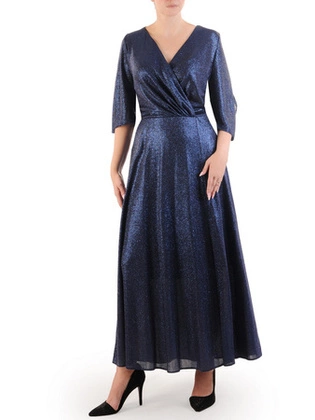 Połyskująca sukienka midi, elegancka kreacja z rozcięciem 34420