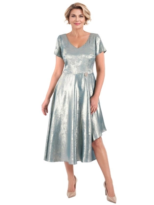 Elegancka zielona sukienka midi, wizytowa kreacja z ozdobnymi detalami 38586
