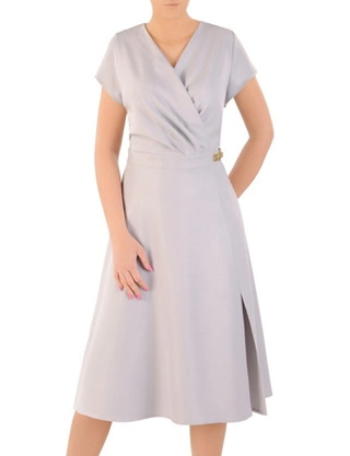Elegancka, kopertowa sukienka z ozdobnym łańcuszkiem w pasie 33037