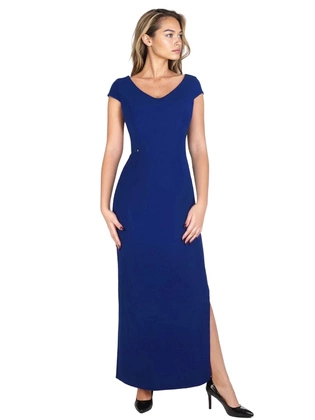 Sukienka na wesele, długa, elegancka, chabrowa suknia z efektownym rozcięciem, duże rozmiary 18289