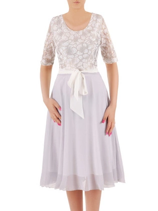 Szara sukienka z koronkową górą i szyfonowym paskiem 36183