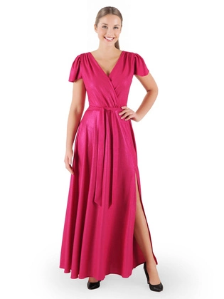 Sukienka na wesele, elegancka, rozkloszowana kreacja kopertowa z połyskiem 38202