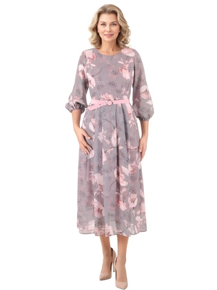 Sukienka na wesele, komunię – elegancka kreacja w kwiaty, rozkloszowany fason z paskiem podkreślającym talię 39797