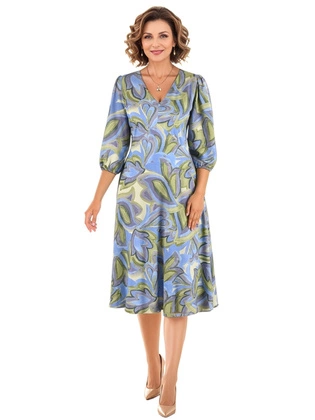Wielokolorowa sukienka rozkloszowana z wiskozy, midi do kolan – modna sukienka na letnie wesele 40063
