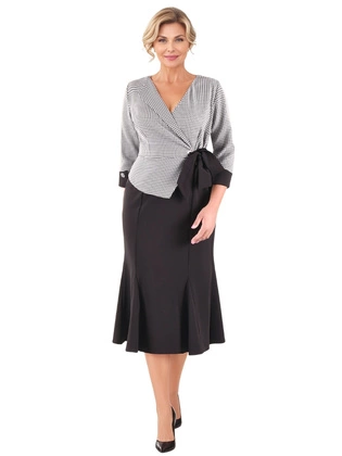 Wizytowa sukienka damska z luźnym, szyfonowym topem 33674