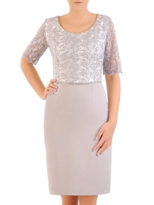 Elegancka asymetryczna kreacja z koronkową górą 33780