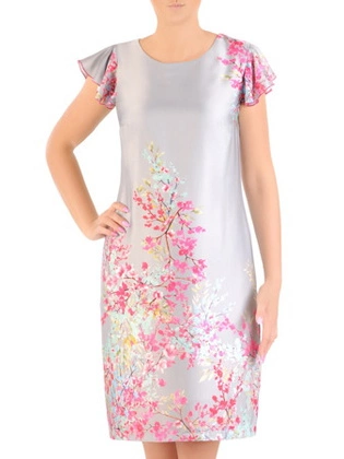 Prosta sukienka z ozdobnymi falbankami na rękawkach 33758