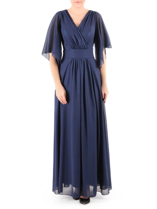 Chabrowa sukienka wyszczuplająca, kreacja z asymetryczną narzutką 31020