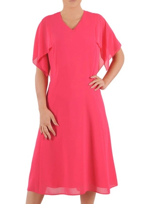 Sukienka na wesele, komunię, elegancka sukienka wyszczuplająca midi, dekolt serek, ozdobne marszczenia 39669