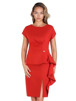 Czerwona sukienka wizytowa z efektowną baskinką 24554