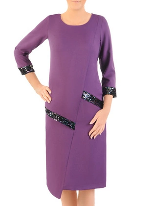 Prosta sukienka damska, asymetryczne wstawki z cekinami 34803