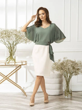 Wizytowa sukienka damska z luźnym, szyfonowym topem 33081