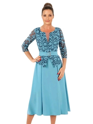 Elegancka sukienka z baskinką w kolorze turkusowym 37662