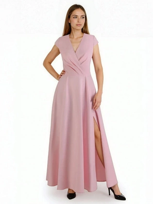 Sukienka na wesele, elegancka suknia wieczorowa, kopertowa kreacja z rozcięciem, duże rozmiary 19923