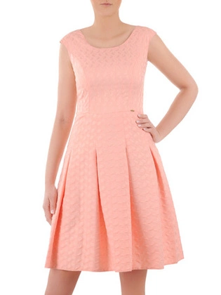 Pudrowa sukienka koktajlowa z kontrafałdami 35646