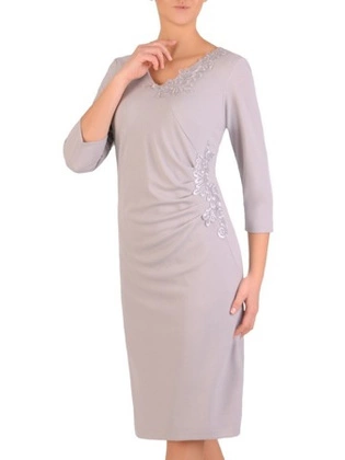 Popielata sukienka z ozdobnymi aplikacjami z koronki 28305