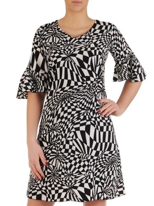 Sukienka z tkaniny, luźna kreacja w geometrycznym wzorze 19547.