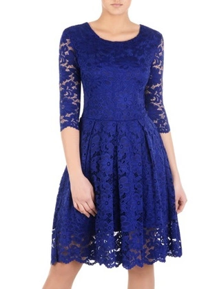 Koronkowa sukienka w fasonie bombki dołem Izolda V, chabrowa kreacja na wieczór