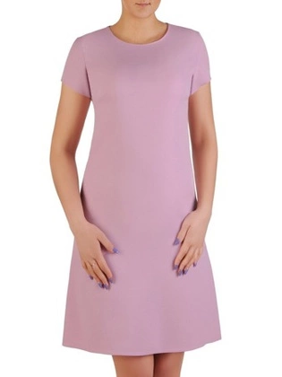 Sukienka z tkaniny, liliowa kreacja z krótkim rękawem 20350.