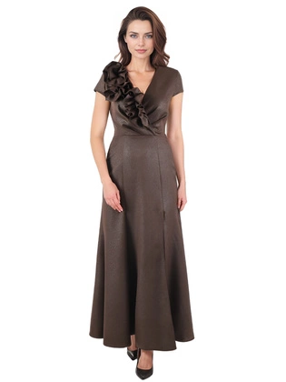 Sukienka na wesele, połyskująca kreacja z kopertowym dekoltem 40123