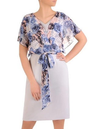 Elegancka sukienka damska z szyfonową górą i wiązaniem 29861