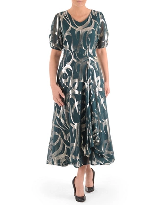 Elegancka sukienka w liście, kreacja maskująca niedoskonałości 33556