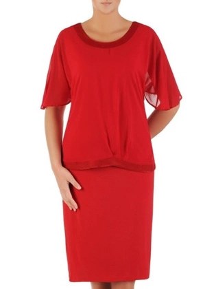 Prosta sukienka z dzianiny z eleganckimi, połyskującymi wstawkami 31406