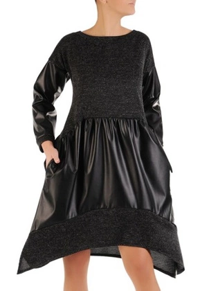 Nowoczesna sukienka z owalnym dekoltem, czarna kreacja z dzianiny 18815