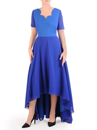 Elegancka sukienka z dłuższym tyłem i ozdobnie wyciętym dekoltem 34345