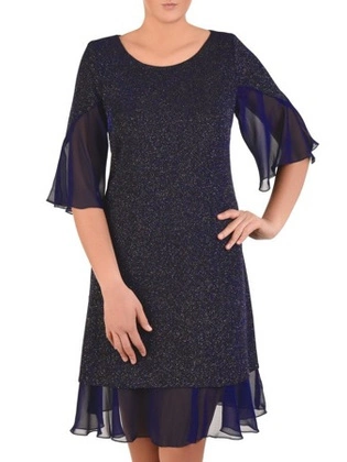 Trapezowa sukienka z błyszczącej dzianiny, luźna kreacja wieczorowa 23810