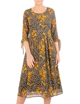 Luźna sukienka z modnymi falbanami 17328, elegancka kreacja w kwiaty