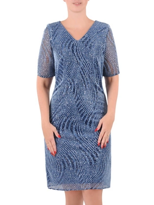 Wyszczuplająca sukienka z koronkową wstawką 17869, nowoczesna kreacja wizytowa