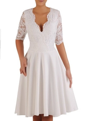 Sukienka z tkaniny i gipiury, kreacja w rozkloszowanym fasonie 22836