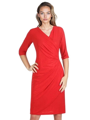 Sukienka kopertowa z dzianiny, wyszczuplająca kreacja w amarantowym kolorze 28160