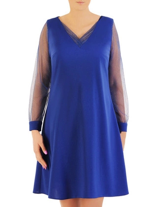 Trapezowa sukienka z połyskującymi rękawami 35028