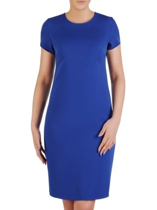Sukienka z tkaniny, chabrowa kreacja z krótkim rękawem 20351.