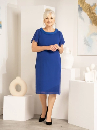 Sukienka na wesele, komunię, elegancka, chabrowa kreacja wyjściowa z kołnierzem 26777