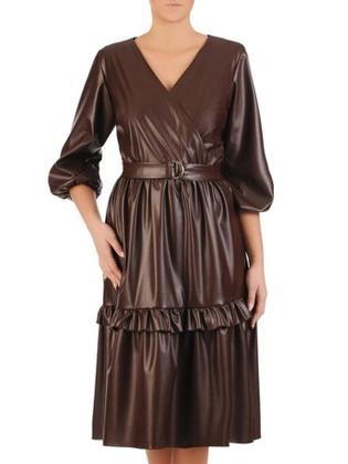 Kopertowa sukienka z paskiem, wyjściowa kreacja z ekologicznej skóry 27825