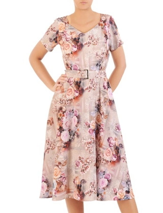 Sukienka z paskiem, zwiewna kreacja w kwiaty 33108