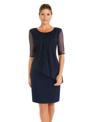 Połyskująca sukienka z asymetryczną, szyfonową narzutką 23125