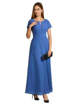 Elegancka sukienka wyszczuplająca 14407, wieczorowa kreacja z błyszczącym topem.