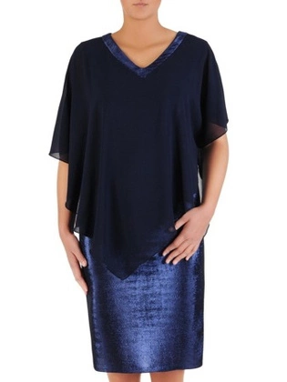 Połyskująca sukienka z asymetryczną, szyfonową narzutką 23124