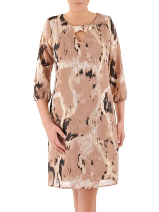 Trapezowa sukienka damska z brokatowym zdobieniem 33673