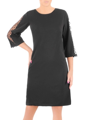 Czarna sukienka z koronkowymi rękawami, elegancka kreacja na wieczór 18964