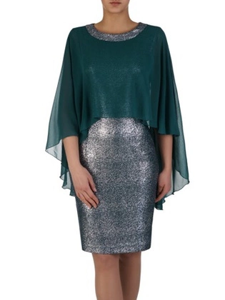 Błyszcząca sukienka Flawia VII, kreacja z szyfonową narzutką.