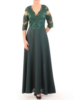 Sukienka koktajlowa maksi, zielona kreacja z koronkową górą 30727