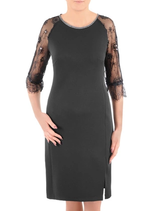 Czarna wyjściowa sukienka z koronkowymi rękawami 37388