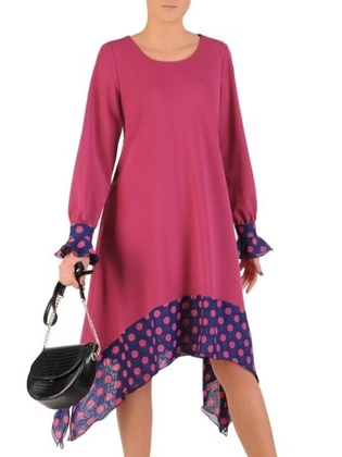 Dzianinowa sukienka z rękawami wykończonymi falbanką 28609